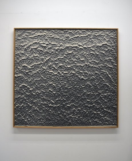 sand, plaster on wood panel, walnut frame