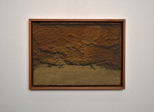 sand, sediment on panel—walnut frame