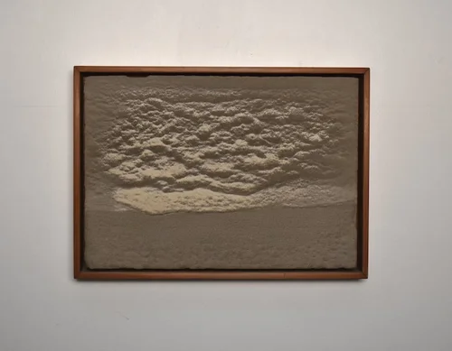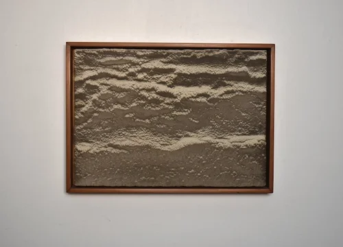 sand, sediment on panel—white oak frame