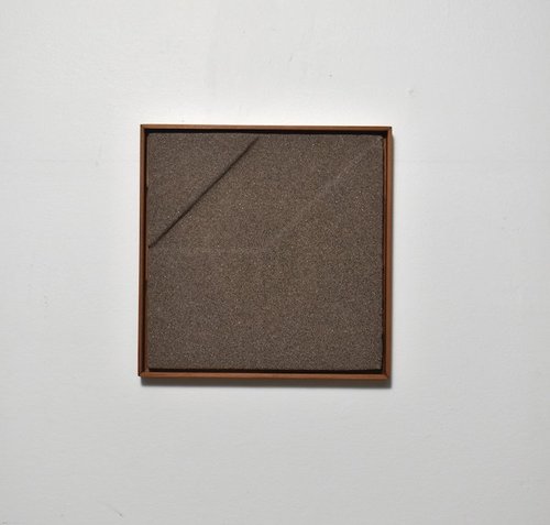 sand, concrete on panel, walnut frame