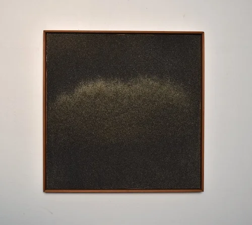 sand on panel—walnut frame